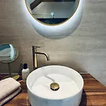 Bathroom facilities also include a walk-in shower and a separate toilet. There are hairdryers, a shower cap, and bath sheets for guests' comfort.